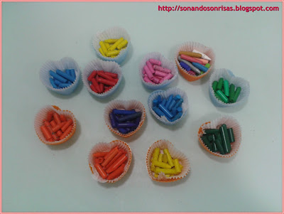 Llevo todo el curso recolectando plastidecor pequeñitas, de las que se rompen o de las que ya no se puede pintar con ellas de lo pequeñas que son. Tenía ganas de cocinarlas ya que había visto la idea en muchas páginas de internet y quería experimentar a ver qué tal me quedaban a mí.