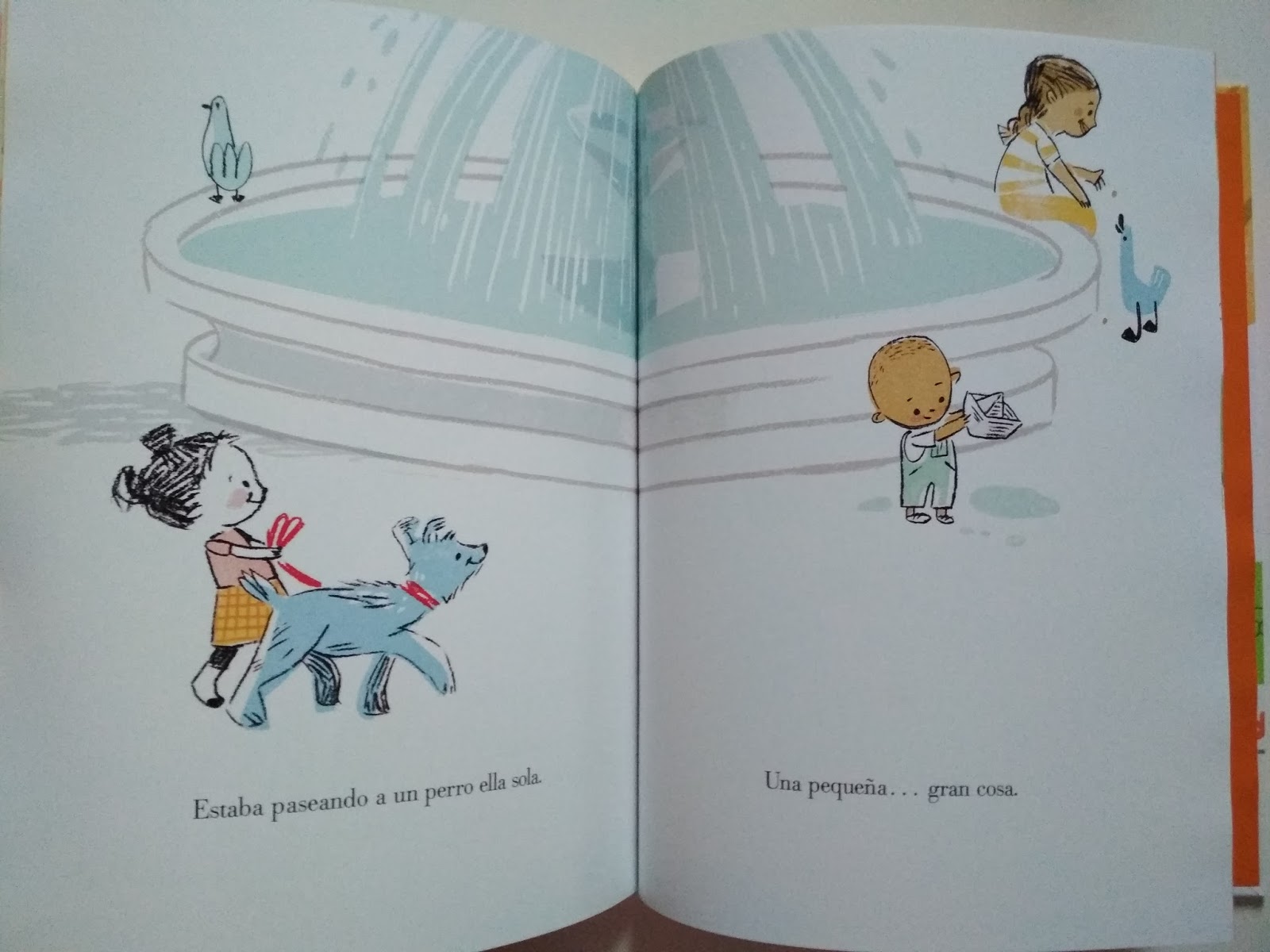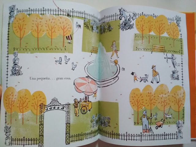 Imágenes sencillas, muy blancas, muchas imágenes que ayudan a visualizar con detalles la historia pero con un texto sencillo.