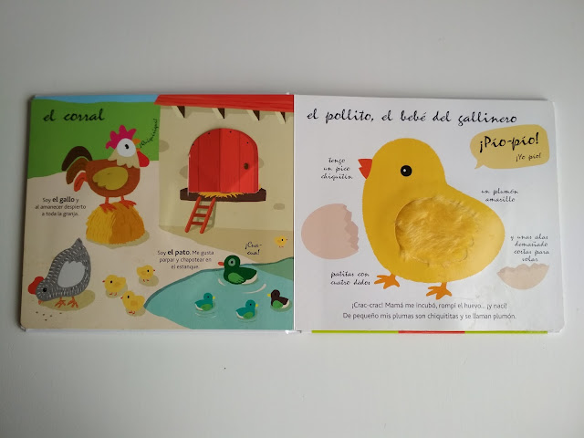 Lo ideal de estos cuentos es que además de que son animales que siempre interesan mucho al niño y aprenden sus onomatopeyas, están hechos con texturas, muchas partes de las páginas tienen diferentes texturas para poder tocar.