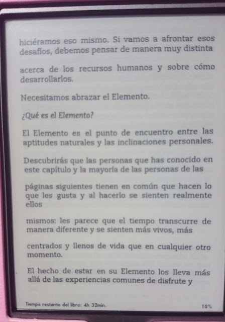 Este libro me parece un pilar básico para poder iniciar una pedagogía actual y del cambio en la escuela, siembra las bases por las que debemos y cómo debemos educar, a raíz de estas ideas (del elemento) debe pensarse todo lo que hacemos en el aula y cómo actuamos con los niños. Pero, además, este libro, aparte de servirnos como base educativa, también puede servir a muchas personas de autoayuda porque lanza un mensaje de ánimo para perseguir y encontrar «su elemento», ya que nunca es tarde.