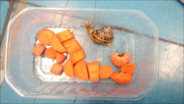 Así que decidimos hacer un experimento, cada día metimos a un caracol con un tipo diferente de comida. ¿Cambiaría su caca?