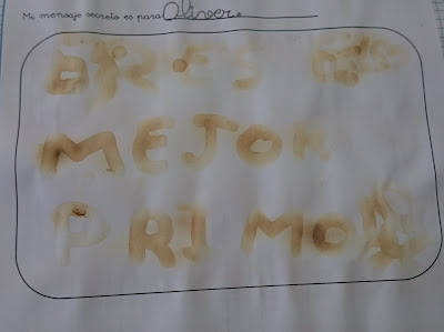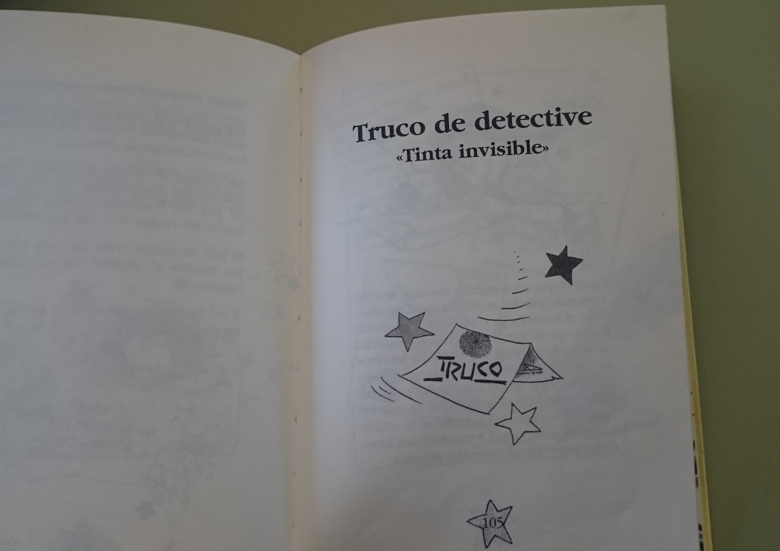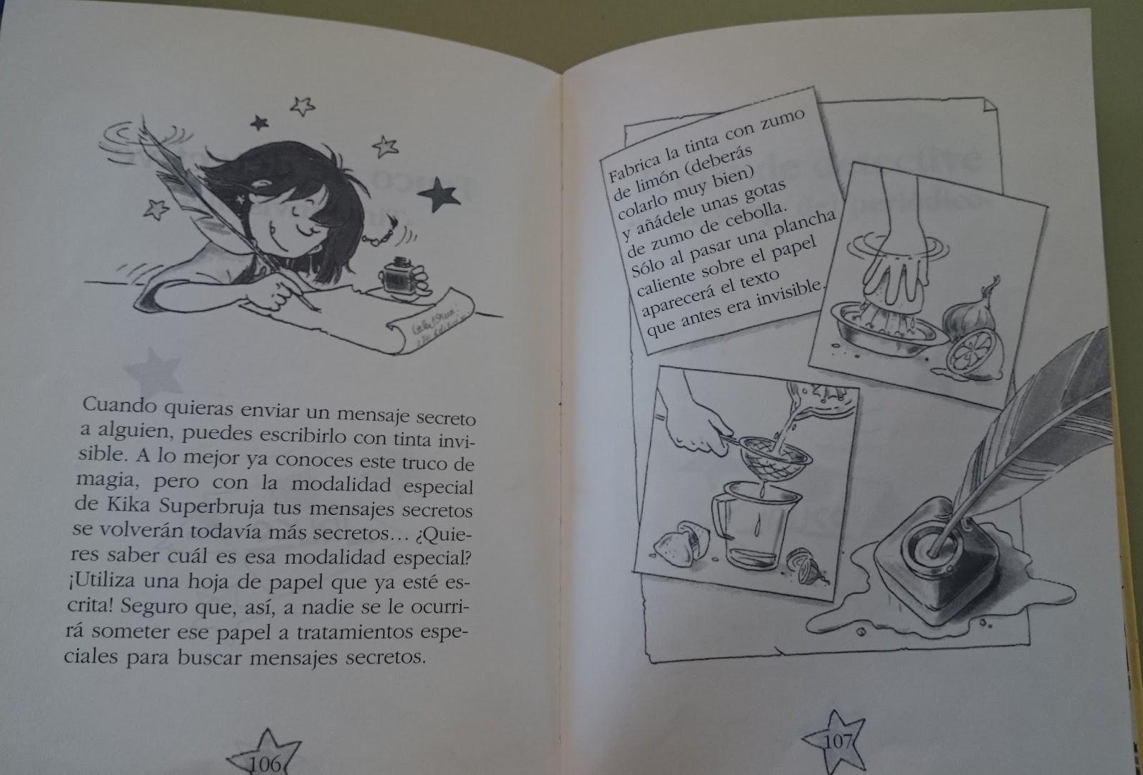 Además de leerlo, al final del libro vienen una serie de trucos para hacer, en este caso decidimos hacer el de Tinta invisible para poder escribir mensajes secretos.