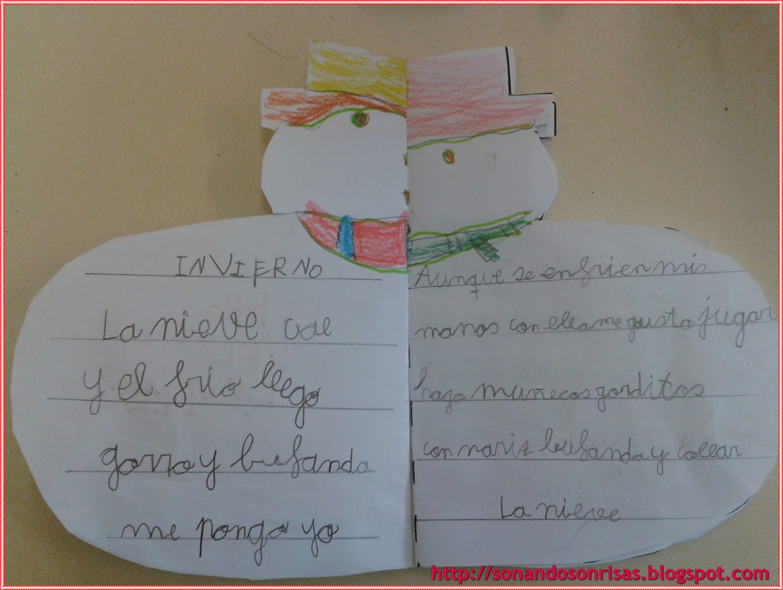 Os ha quedado muy chuli. Nosotros también lo hicimos pero con una poesía de Gloria Fuertes , El hombre de nieve, y la plantilla de Actiludis. Un beso y feliz día de la mujer!!!!