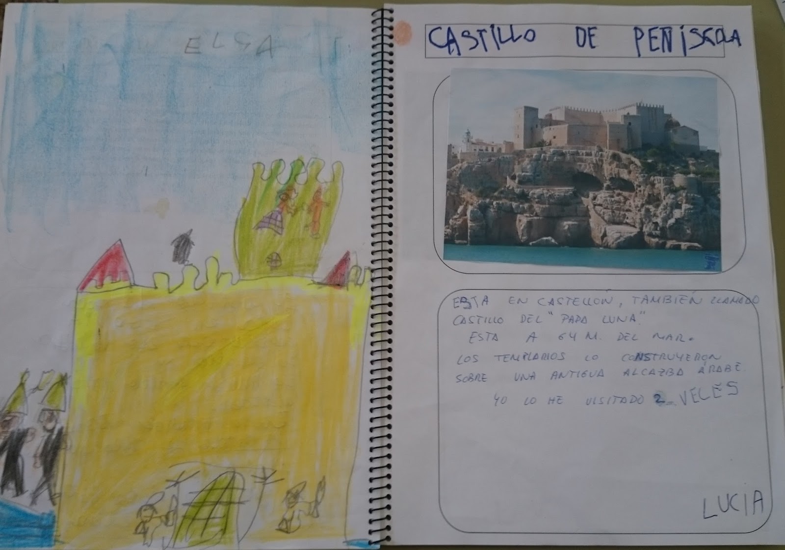 Cada niño ha trabajado un castillo en casa, algunos han sido repetidos, pero no pasa nada porque teníamos cosas diferentes, hemos salido a explicarlos al resto de la clase y los hemos ido situando en el mapa de España. Los hemos puesto con un código de color, para enterarnos bien de dónde están.