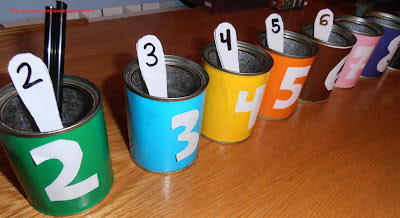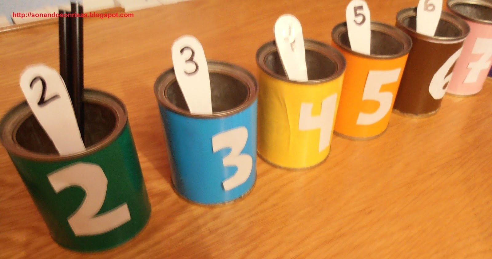 – Botes numerados con sus respectivos palos (para asociar grafía) y pajitas para contar (asociando la cantidad).