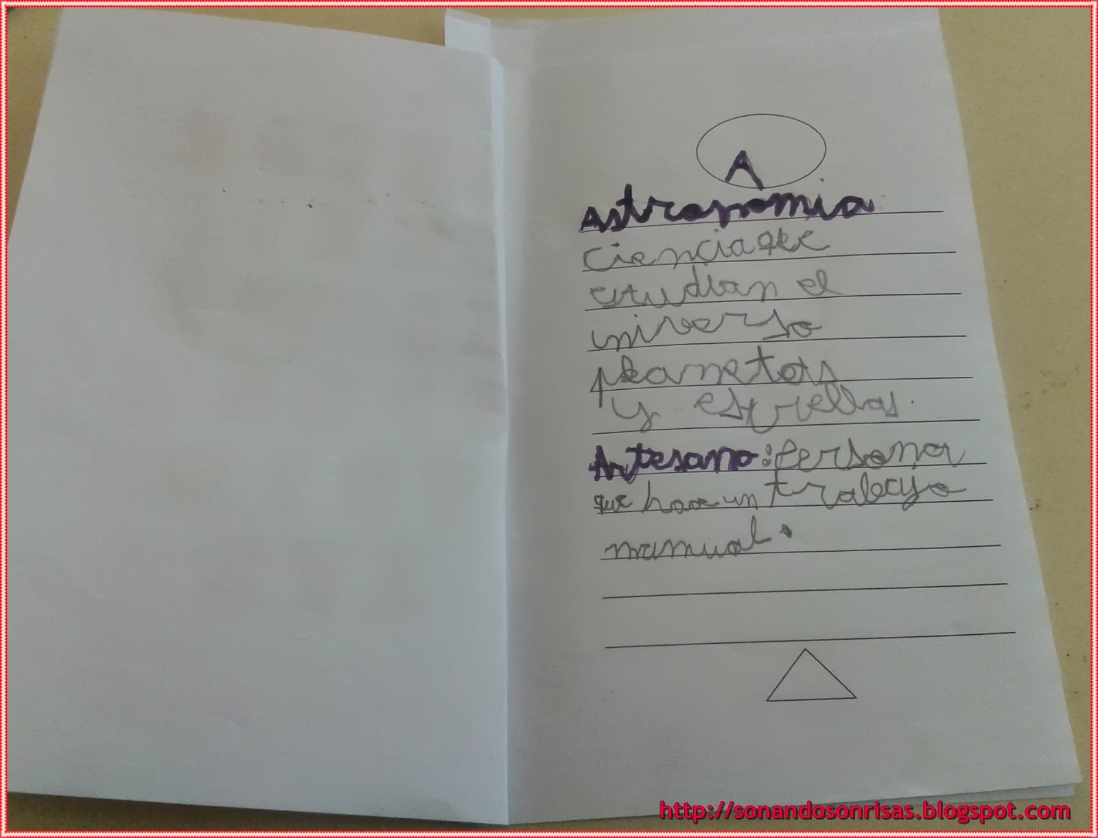 En la parte de arriba anotamos la letra y el triángulo de abajo lo guardamos para numerar las páginas cuando lo acabemos.