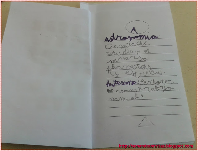Por ello vamos elaborando un diccionario conjunto de clase, y un diccionario individual. Esta actividad surge de la necesidad de ir registrando todas las palabras que vamos conociendo, para que quedando plasmada la ampliación de vocabulario sea más significativa.