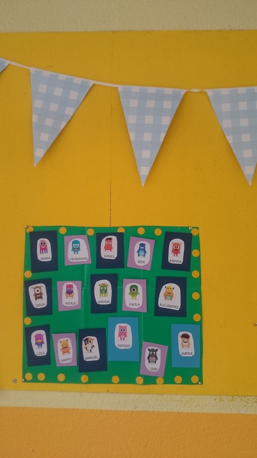 Y ellos nos acompañan a diario también en las mesas y en el tablón. La verdad que cada uno se identifica con su monstruo que a la vez se llama como él.