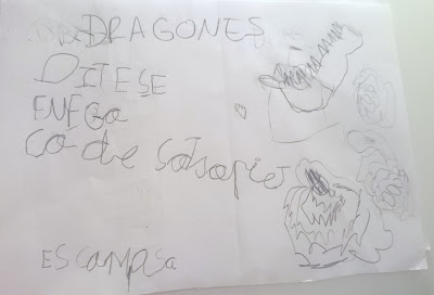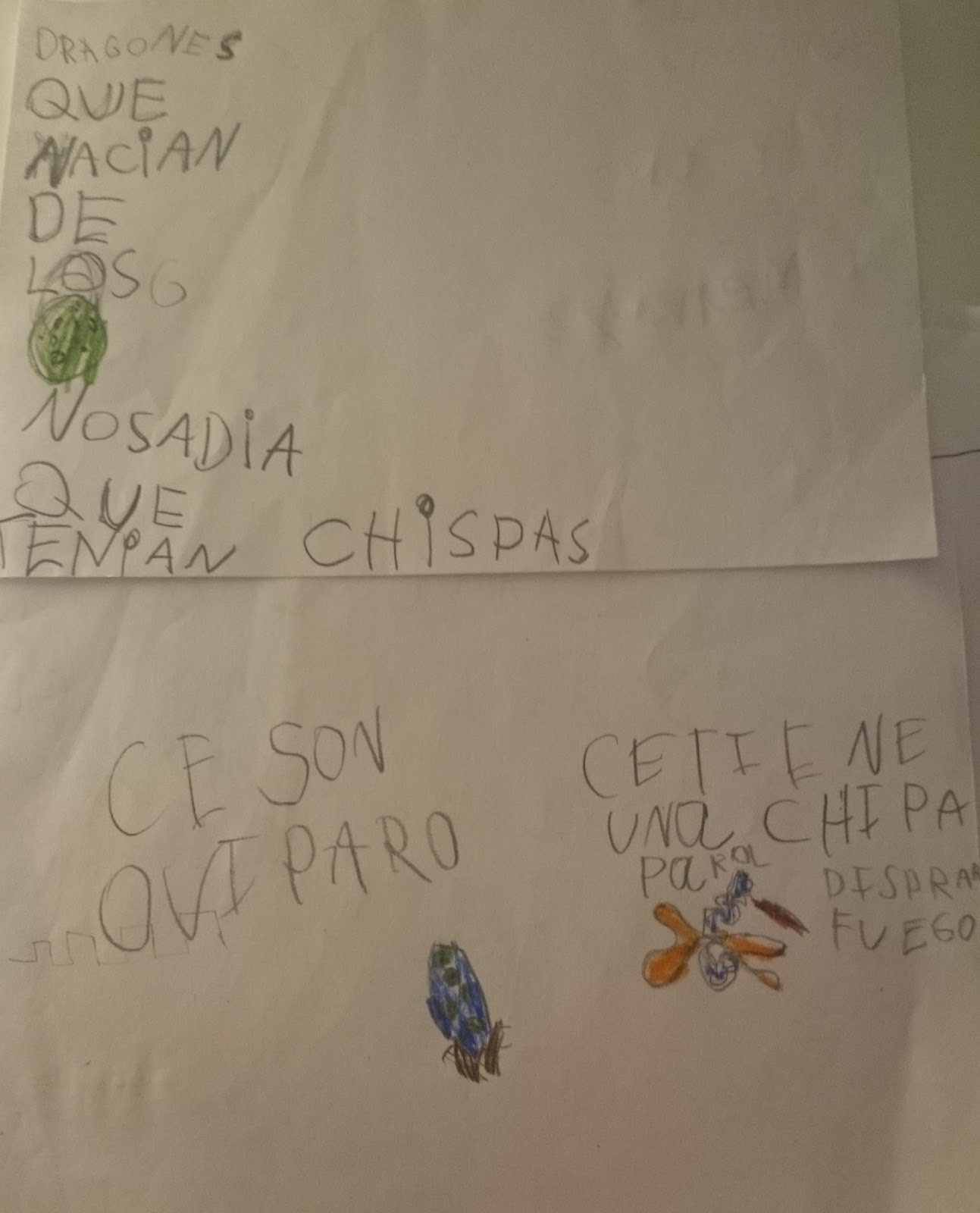 Y lo hicieron genial, fueron capaces de escribir a su manera y luego decirme, por turnos, cosas que habíamos aprendido. Se nota que han avanzado un montón en la lectoescritura.
