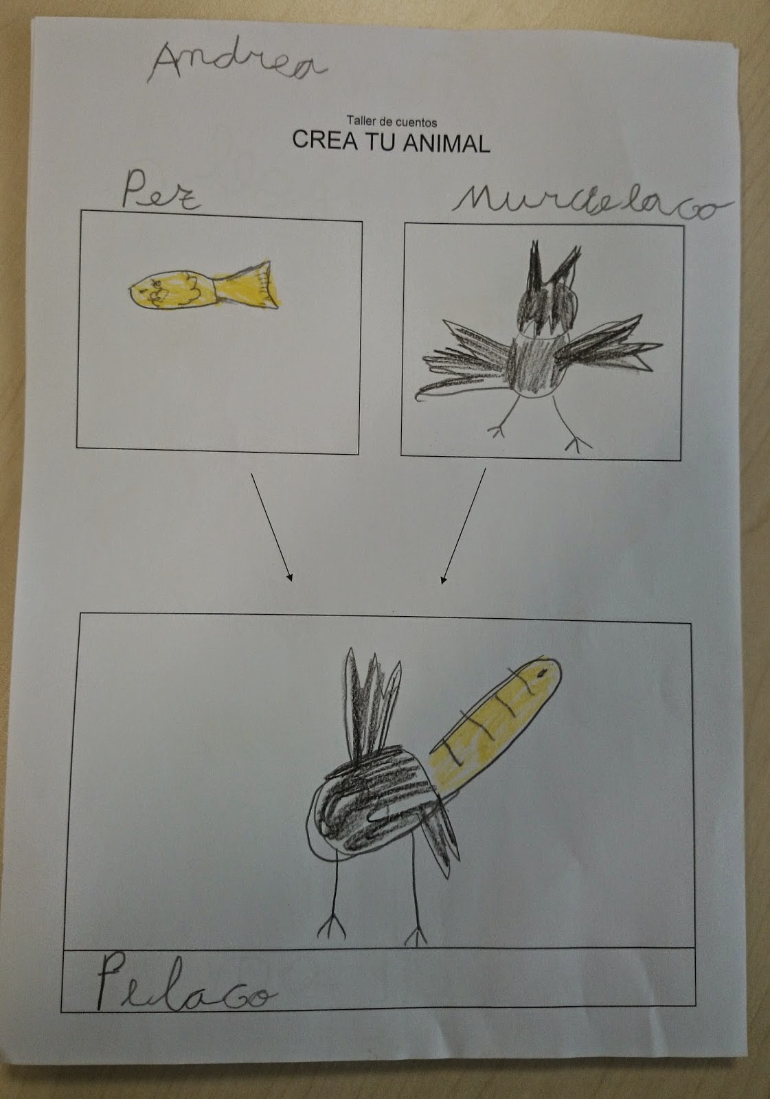 Después de leer el cuento cada niño pensó en dos animales, los dibujó y luego creó a un nuevo animal. Estos son algunos: