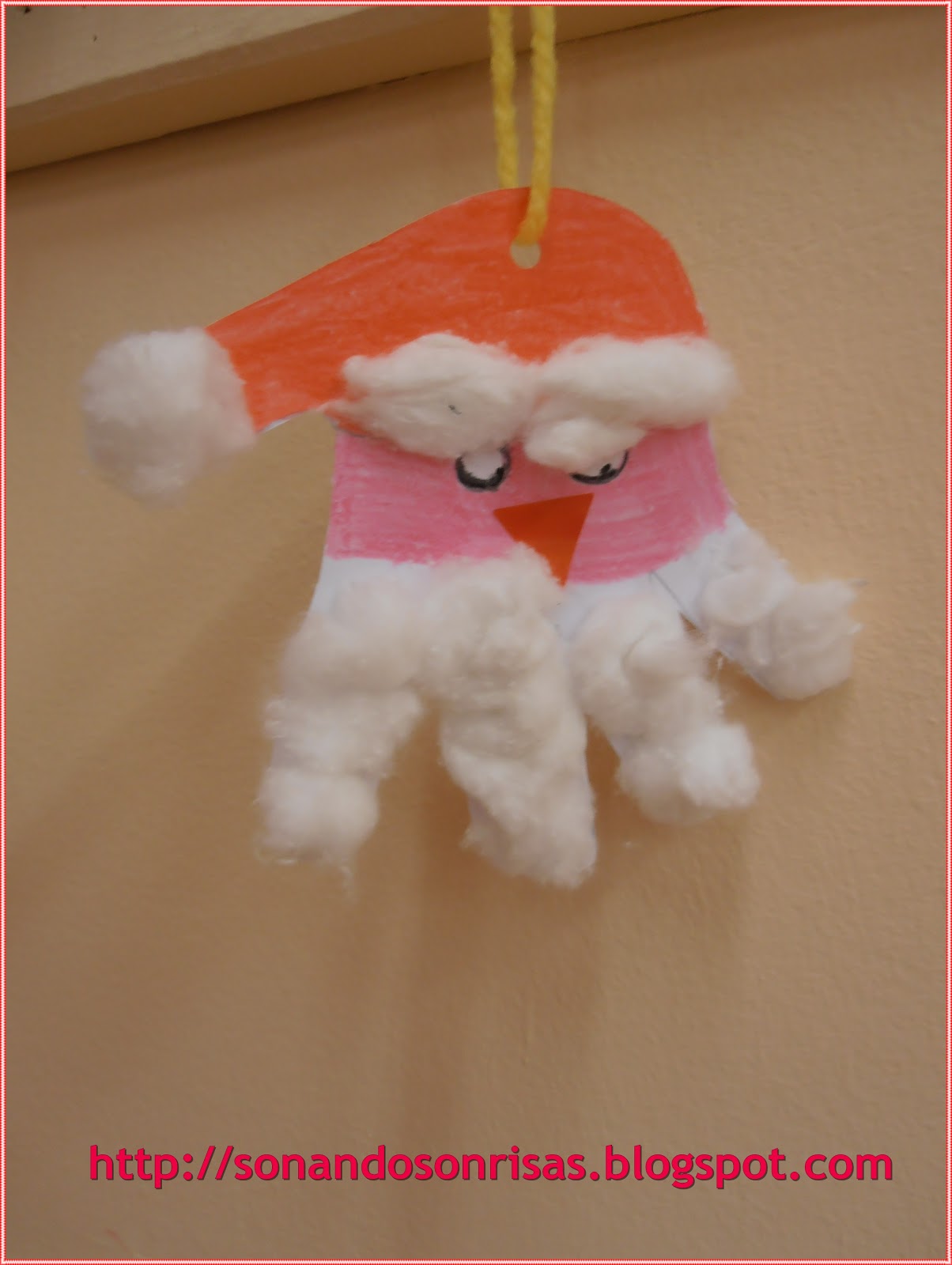 Hacemos el contorno de nuestra mano en la cartulina, recortamos y decoramos la cara de Papá Noel como veis en las fotos.